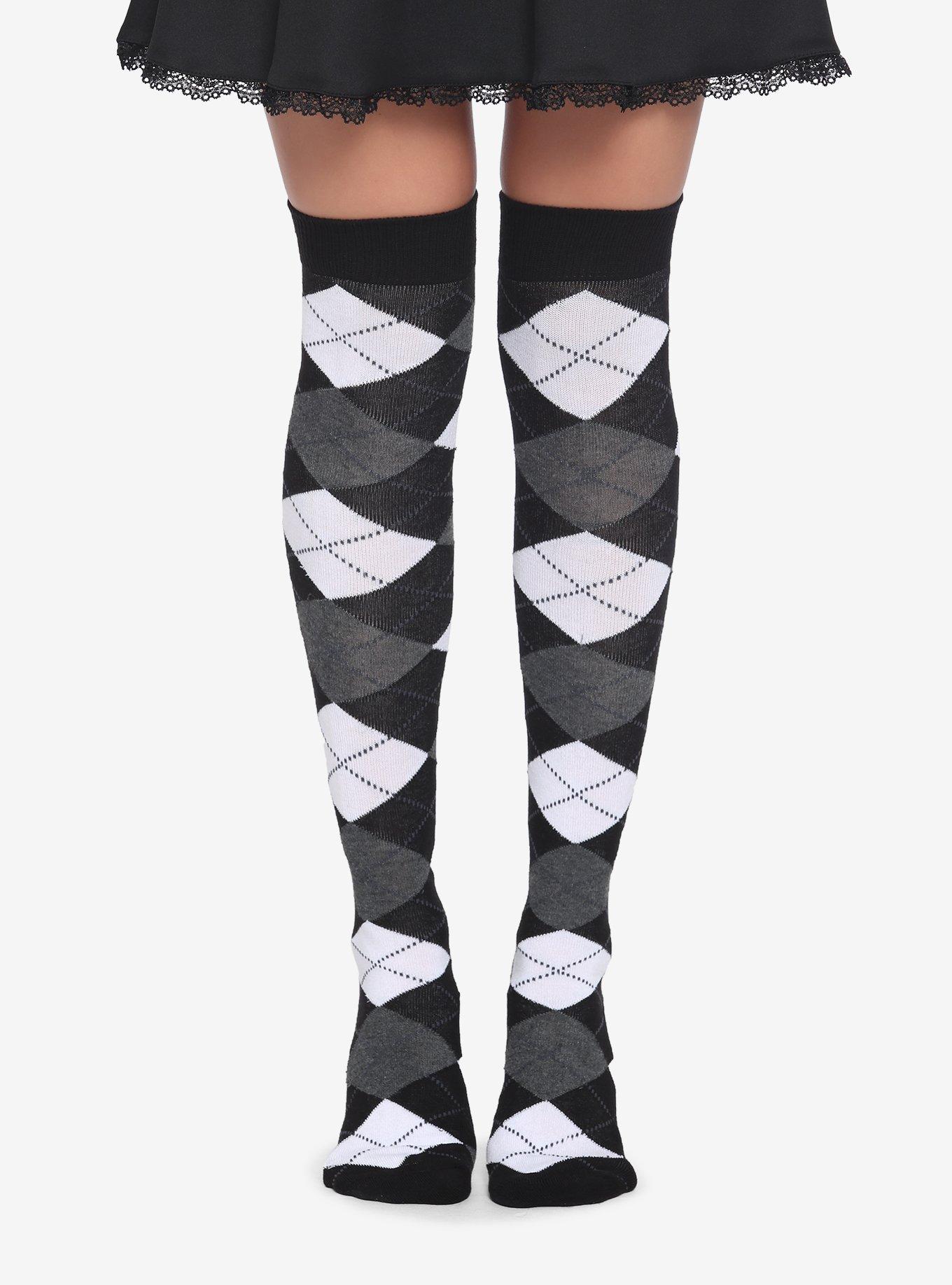 Black White & Grey Argyle OverTheKnee Socks Hot Topic